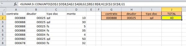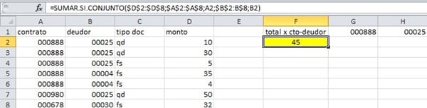 Es decir todos los qd que pertenecen a deudor 25 y a contrato 000888 y que me sume el monto