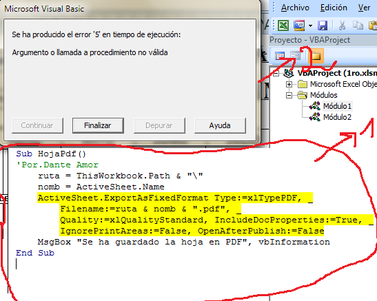 Crear un magro con botón para convertir en PDF las hojas de Excel