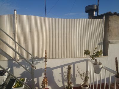 En la tercera altura tengo una terraza que tiene una medianera de un metro, y si te asomas, la terraza de la vecina esta a unos 5 metros más abajo, ya que mi casa tiene una altura más.