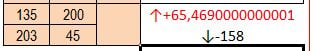 el problema me surge cuando al intentarlos comparar con esta formula: =SI.ERROR(SI(I15>H15;"↑+"&I15-H15;SI(I15<H15;"↓-"&H15-I15;"→|←"));"Error"), como resultado obtendo este valor: ↓-0,00099999999991951.