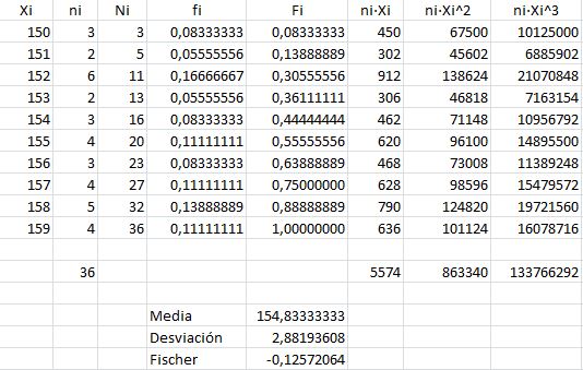 Espera que me lie y lo escribí mal. Voy a operar con el de datos sueltos y luego lo transformo para datos agrupados.