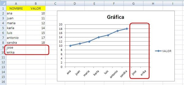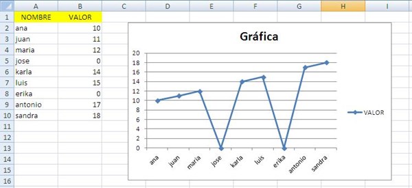 Como unir puntos en gráfico de excel