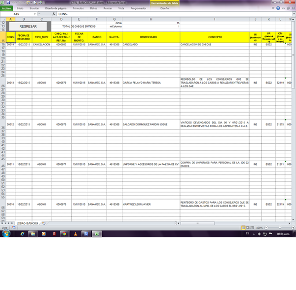 Tengo un archivo de excel con dos hojas, en una tengo una mascara de captura, en la que tengo los datos a capturar, tipo de movimiento, numero de cheque, fecha, estructura contable, importe, etc..., en la segunda una base da detos en la que las columnas tienen el nombre de cada campo de captura, con una macro inserto los datos en esa base, pero hay datos en los que por necesidad debo capturar diez artículos por cheque y lo hago insertando 10 columnas, pero muchas de las veces se usa solo una línea, al ver la base de datos esta tiene muchos renglones en blanco pues no se utilizaron.