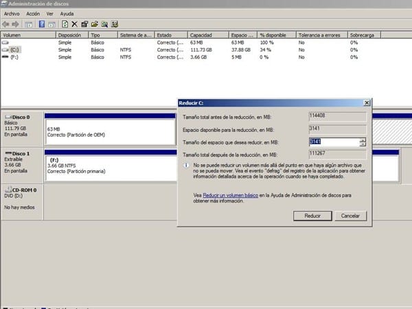 Quiero particionar mi disco duro pero me sale que solo puedo disminuir muy poco el volumen. Dice que hay un archivo en cierto punto. Pero ya fragmente el disco varias veces y me sigue saliendo lo mismo. ¿Qué ocupo hacer? Si me podrían ayudar por favor. Esta es la imagen que me sale. De antemano gracias