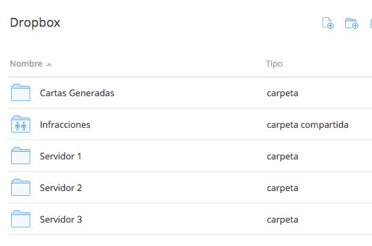 Adentro de la carpeta Dropbox, hay 5 carpetas: