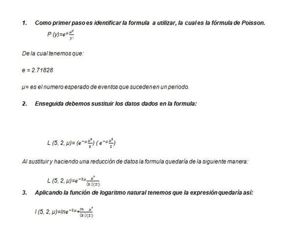 - Como primer paso es identificar la formula a utilizar, la cual es la fórmula de Poisson.