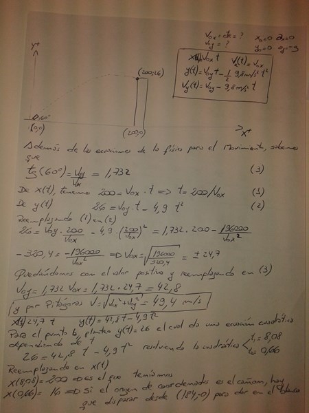 Así el punto de impacto será (0,26) y el punto desde donde se dispara (-200, 0)