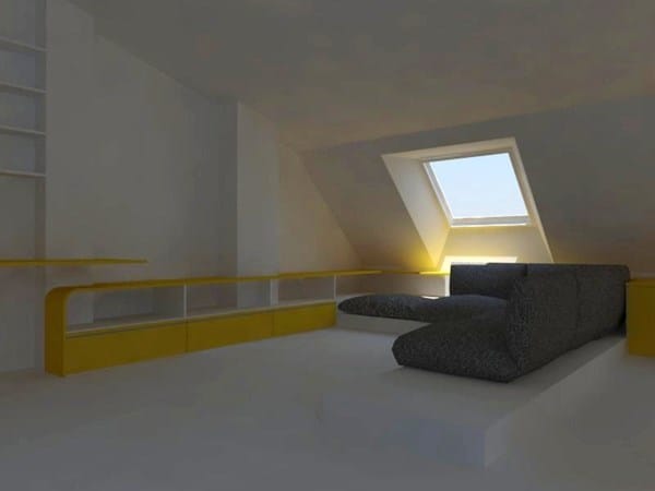 Quiero que sea una superficie continua en color amarillo/mostaza y con partes curvas. Había pensado en algún tipo de piedra acrílica como Corian o Krion.