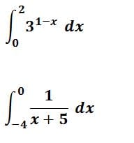 $$\begin{align}&(3^{1-x})' = 3^{1-x}·ln3·(-1)= -ln3·3^{1-x}\\&\\&\text{y para que eso sea el integrando debemos} \\&\text{multiplicar por una constante y así la}\\&\text{derivada sería}\\&k(-ln3)·3^{1-x}=3^{1-x}\\&k·(-ln3) = 1\\&k = -\frac 1{ln3}\\&\\&\text{con lo cual la integral es}\\&\\&\left.-\frac{1}{ln3}·3^{1-x}\right|_0^2=\\&\\&-\frac{1}{ln3}·(3^{1-2}-3^{1-0})=\\&\\&-\frac{1}{ln3}(3^{-1}-3^1)=\\&\\&-\frac{1}{ln3}\left(\frac 13-3 \right)=\\&\\&-\frac{1}{ln3} ·\frac{-8}{3}= \frac{8}{3\,ln3}\\&\\&\text{Si quieres hasta puedes poner }\\&\\&\frac 8{ln\, 27}\end{align}$$Y con la segunda no vas a tener tanto lío, todo el mundo está de acuerdo nada más que la ve que la integral es