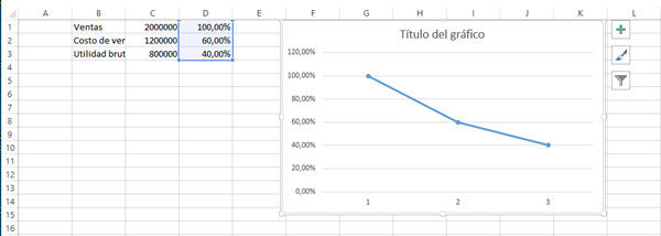 B3=Utilidad bruta, B3=C1-C2 (800,000.00), D3= (C3/$C$1)*100
