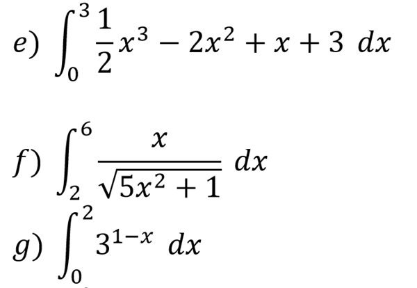 La primera la resolveremos directamente y la tercera también aunque con algún razonamiento extra. En la segunda haremos cambio de variable con cambio de límites de integración simultáneo. Aunque en realidad se podría hacer de cabeza, pero es más difícil explicarlo que hacerlo con cambio de variable.