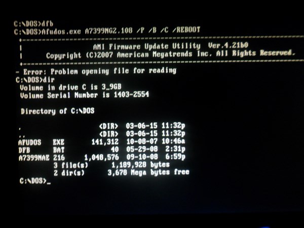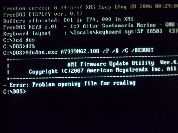 Pero el Afudos ya lo tenemos en el usb solo copia la ROM A7399NAE. 216 que sale en el zip en el directorio DOS y la dejamos flasheada con su ultima bios.