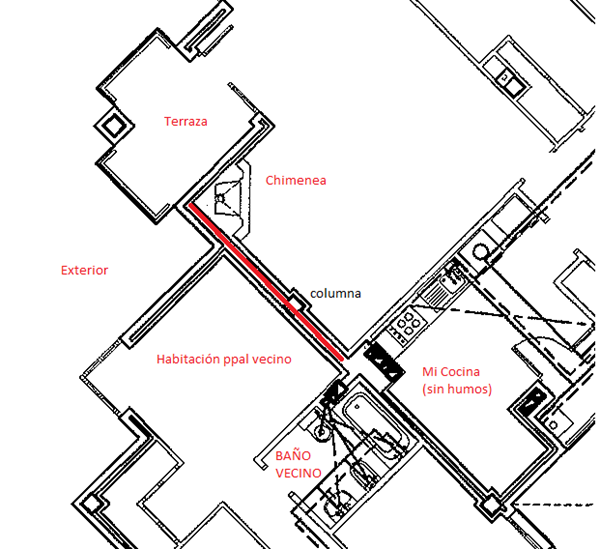 Chimenea leña provoca olores en el baño del vecino.