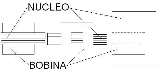 La aplicación de una diferencia de potencial en los extremos de la bobina de la rama central te produce un flujo magnético que la atraviesa.