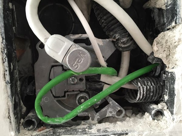 Esta es la toma antigua, uno de los cables blancos llega del vecino de arriba y el otro va a el de abajo. Eso sigue igual.