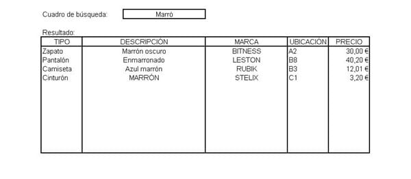 Como el ejemplo indica querría hacer un formulario en Access 03 que escribiera en el cuadro de búsqueda una palabra y que de la tabla Datos cogiera las columnas que quiero (tendría más pero yo solo quiero esas cinco columnas). La búsqueda sería sobre la columna Descripción y puse ejemplos a ver si podría coger todo eso. El primero es la palabra en la primera parte del campo, el segundo es dentro de una palabra mayor que tiene letras por delante y detrás, la tercera es en la segunda parte del campo y la cuarta es es mayúsculas. Además me gustaría que las tildes no fueran importantes por lo que si tanto la pones como si no debe hacer caso solo a las letras.