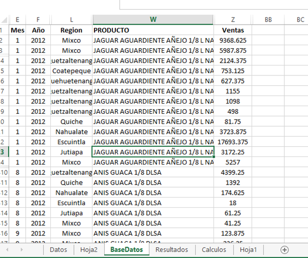 - Te carga los 2 combos producto y región, considerando las columnas que pusiste en la imagen.