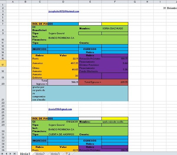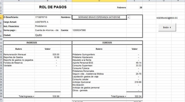 hola la plantilla la he hecho con validación de datos, es decir solamente tengo que seleccionar el nombre del empleado y todo lo demás está formulado, la plantilla es la que adjunte así como la macro.El problema que tengo es que al inicio la macro se ejecuta correctamente y manda un mail con toda la información pero al momento de seleccionar otro nombre y ejecutar la macro por segunda vez esta envía la información del primer nombre, tengo que ejecutar dos veces para que envíe correcta la informacion al mail correcto.Dante tal vez me puedes ayudar o tengo que hacer una nueva pregunta.gracias - jose luis soria