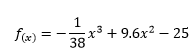 $$\begin{align}&f'(x)=-\frac 3{38}x^2+19.2x\\&\\&\text{o si les parece más simplicado esto, adelante}\\&\\&f'(x) = \left(\frac 3{38}x+19.2 \right)x\end{align}$$2)