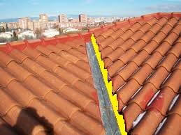 Tengo una duda desde hace mucho tiempo referente al tejado de mi casa. Este esta construido con tejas de cerámica y en dos lados tiene una lima vierteaguas metálica, el problema es que todos los años compruebo, que la pasta que cubre el remate de unión de las tejas con la lima se desprende (zona amarilla de la foto), e ignoro si es porque el mortero que uso no es el adecuado o bien no es la forma de hacerlo. Muchas gracias