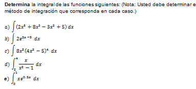 Usted debe determinar el método de integración que corresponda en cada caso