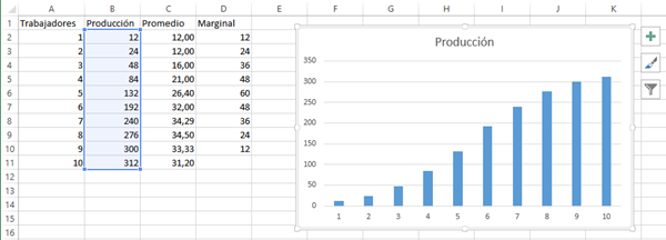 A) Calcula el producto promedio del trabajo y dibuja la curva correspondiente