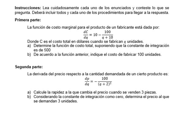 Si nos dan la derivada del costo, para conocer el costo deberemos integrar la derivada.