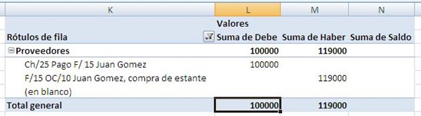 Y con la tabla dinámica te hace el acumulado por proveedores y puedes obtener el debe, haber y saldo de forma automática.