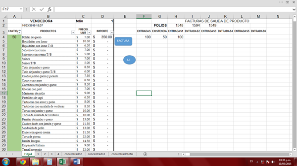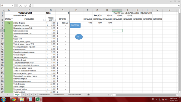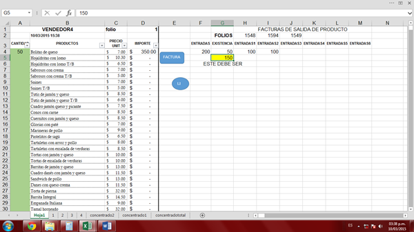 Y en G4 la existencia de cada producto, en este caso como hay 100 entradas también hay 100 de existencia porque no le he dado salida…