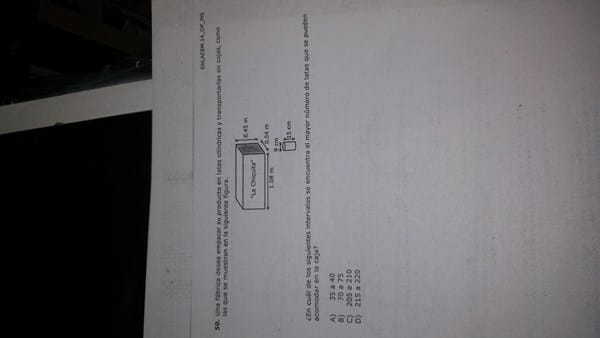 ¿En cuál de los siguientes intervalos se encuentran el mayor numero de latas que se pueden acomodar en la caja?