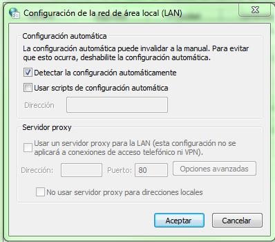 Recuerde también desactivar la primera casilla de verificación "Detectar la configuración automáticamente"