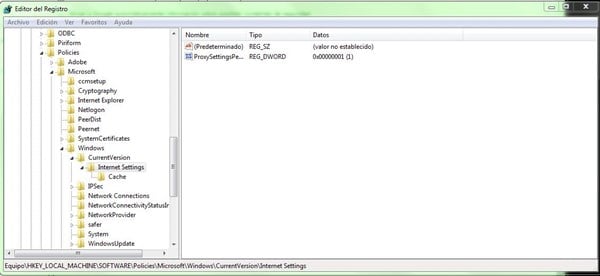Vaya a HKEY_LOCAL_MACHINE\SOFTWARE\Policies\Microsoft\Windows\CurrentVersion\Internet Settings