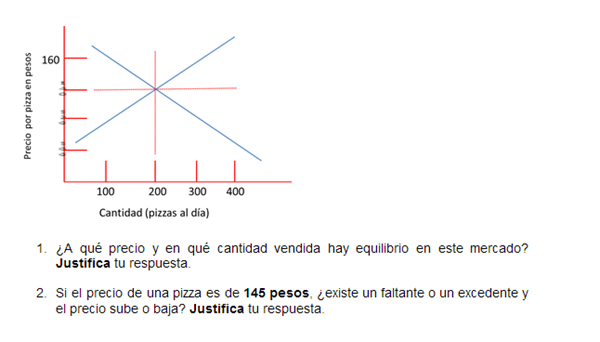 Determina el punto de equilibrio en el siguiente mercado simulado de pizzas respondiendo a los cuestionamientos: