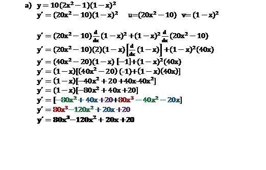 Como se deriva la siguiente función y=10(2x^2-1) (1-x)^2