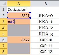 Buenas noches, necesito su ayuda por favor creando un autofill automático en la columna A, creo que la imagen es bastante ilustrativa, necesito que el 8520 se me auto llene hasta donde terminan los items de esa cotización y así sucesivamente con el 8522, y así seguiría siendo para las demás cotizaciones que vayan llegando con sus respectivos items.