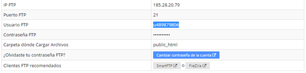 Además he cambiado la contraseña de Acceso a FTP desde el control de mí cpanel y el usuario es el que he tenido siempre.