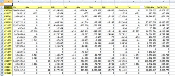 Tengo una base de datos en donde tengo en la columna principal códigos de productos, y tengo diferentes columnas con valores, la idea es poder a través de una fórmula poder sumar todas las columnas que tengan el mismo título. Actualmente tengo que hacerlo a mano y el reporte que se genera no siempre es igual y no siempre las columans son seguidas. (SAP)