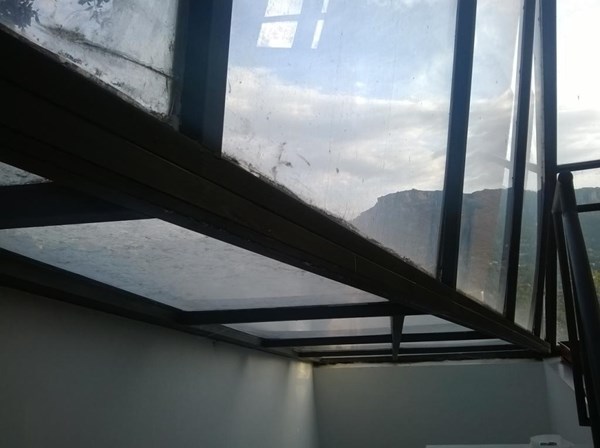 Habría que saber como es esta estructura (si es de hierro, de aluminio, medidas, etc), como está anclada a las paredes (profundidad de los anclajes), y medidas del lucernario. Dîmelo y te diré qué pienso.