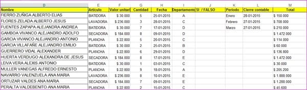 cumplan con la condición <o =fecha del periodo contable de enero 2015 de la casilla L2, dejando como SI, en caso contrario, indicar FALSO.