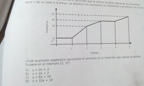 ¿Cual es la expresión algebraica representa la variación en el recorrido que realiza la señora Susana en el intervalo [2,3]?