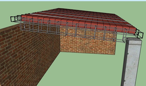 Te refieres a algo si no entendí lo de "Las vigas se sujetaran en dos paredes de un pie haciendo ángulo de 90 y para cuadrar una columna en la esquina sobre la que sujetar las vigas desde el muro a la columna o pilar."