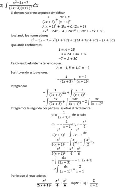 La parte del cálculo de las constantes A, B, C está bien, aunque necesitaría alguna de esas explicaciones que cuando la persona está en directo la das de palabra, pero cuando lo dejas por escrito hay que escribirlas y fastidia mucho hacerlo. Empiezas con numeradores y denominadores y de repente desaparecen los denominadores sin decir nada, a eso me refería.