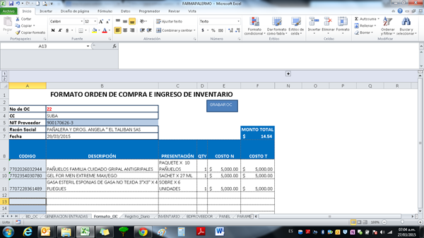 1. Tengo un formato de Orden de Compra en la hoja Formato_OC en el cual relaciono los datos del proveedor y plasmo la negociación con el proveedor.