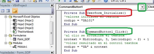 Ya conseguí que lo que se diligencia en el useform sea pegado en mi hoja de excel "registros". Quiero que el código se genere automáticamente teniendo en cuenta el ultimo código que se generó en la hoja de excel, por ejemplo, si el ultimo generado y escrito en mi hoja de excel fue SA101, que éste código sea SA102.