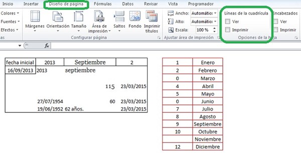 Busca el menú Diseño de página y allí quitale el tilde a la opción "Líneas de cuadricula"