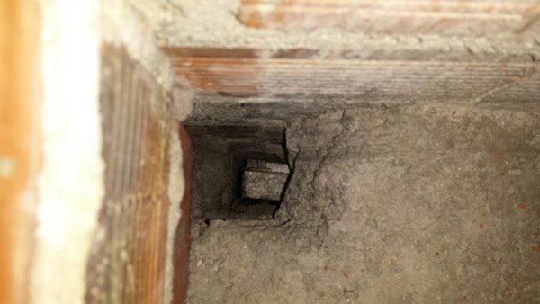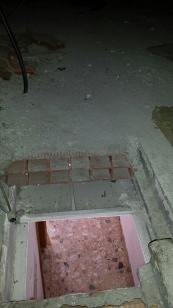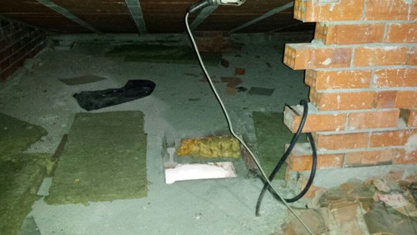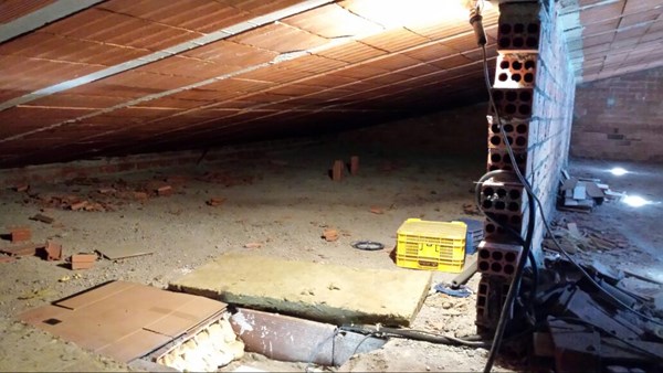 Al fondo de esta parte en el rincón se ve un agujero que dejaron, por el que se puede ver el aislante que pusieron en la fachada sur de la casa, y que yo pensaba que ni siquiera había, ya que el calor en verano es insoportable y el agua calienta hasta las tuberías del agua fría que también sale caliente hasta que corre un buen rato.