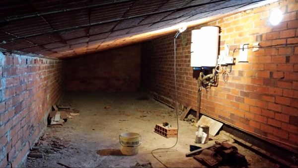 Parte baja de buhardilla con pared de apoyo y ahora pongo el otro lado de esa pared, a la que le hice agujeros por la parte de arriba para ventilar las dos partes.