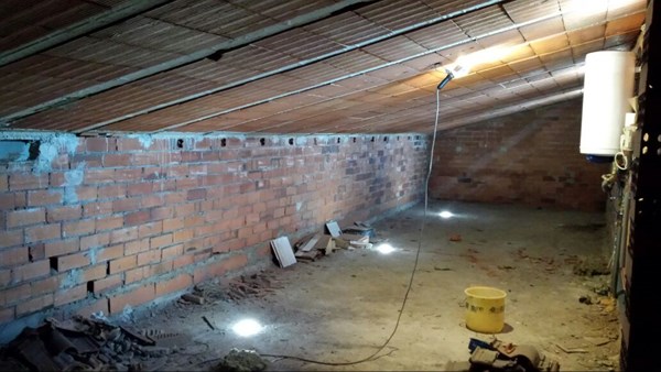 Toda la casa da al exterior, por el lado de este aislante da el sol todo el día, y por el lado que la buhardilla muere a 20 cm de altura no da el sol mas que un par de horas, las otras dos fachadas, una es total norte, pero da a la entrada y hueco escalera, y la otra da a una pared del patio de la casa colindante. El caso es que en invierno con el primer frió, en casa hace frió, y en verano en cuanto empieza el calor, ya hace calor dentro de casa, debajo se aparcan los coches y esta casi siempre abierto.