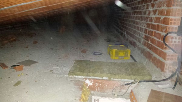 Amplio información con imágenes de la pared en la que pega siempre el sol y que no se ven, pero proyectan la luz los tres agujeros de 200 milímetros de la pared del termo eléctrico lado derecho, y que ventilan la buhardilla.