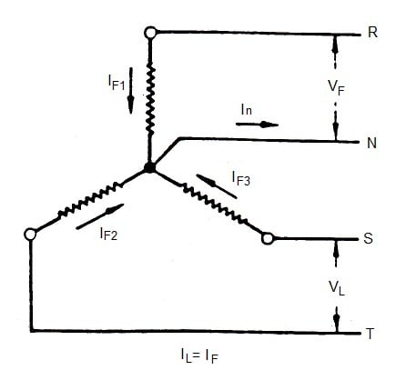 Por seguridad el neutro se conecta a tierra en el transformador y otros puntos de la red de distribución, esto hace que el neutro no tenga voltaje a tierra y las fases tengan un voltaje igual o muy parecido al de fase-neutro. De un transformador conectado en estrella se pueden conseguir 2 voltajes según cuáles de los 4 hilos se usen, con un voltaje bajo entre fase y neutro y elevado entre fases, estos voltajes tienen siempre relación de 1,732, como por ejemplo 120/208 V, 127/220 V, 230/400 V, 240/416 V, etc.